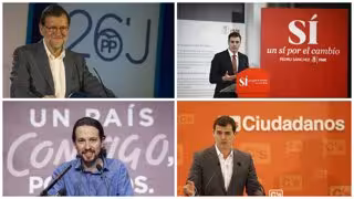 Este lunes se emite a partir de las 22 horas en la 1 de TVE, Antena 3, la Sexta, Telecinco y 13TV, así como algunas televisiones autonómicas, el debate a cuatro entre los cabezas de lista del PP (Mariano Rajoy), PSOE (Pedro Sánchez), Ciudadanos (Albert Rivera) y Podemos (Pablo Iglesias) de cara a las elecciones generales del próximo 26 de junio.