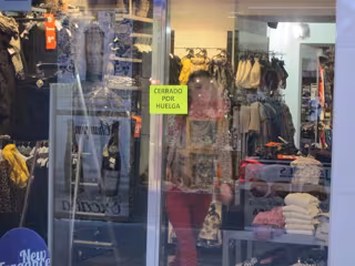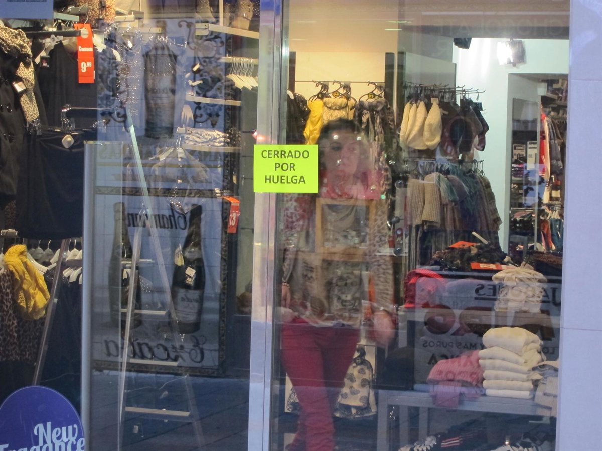 'Echa el cierre un día para no tener que cerrar siempre' ha sido el lema con el que estos piquetes se han dirigidos a los encargados de las tiendas comerciales, a los que han entregado octavillas que explican los motivos de la huelga general.