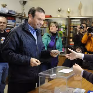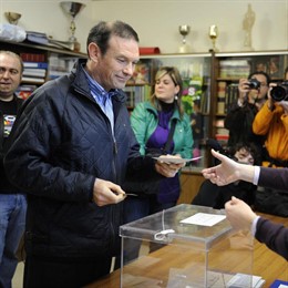 De forma previa y a su llegada, Ibarretxe recogió su voto de una de las cabinas, tras saludar a los presentes, antes de ejercer su derecho al sufragio.