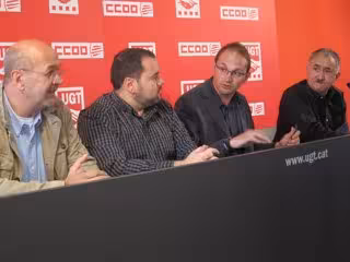 En rueda de prensa junto a los secretarios generales de UGT y CC.OO. en Cataluña, Josep Maria Álvarez y Joan Carles Gallego, ha emplazado al Ejecutivo catalán a presentar los presupuestos "que el país necesita" para generar empleo y reactivar la economía sin tener en cuenta un límite de déficit.