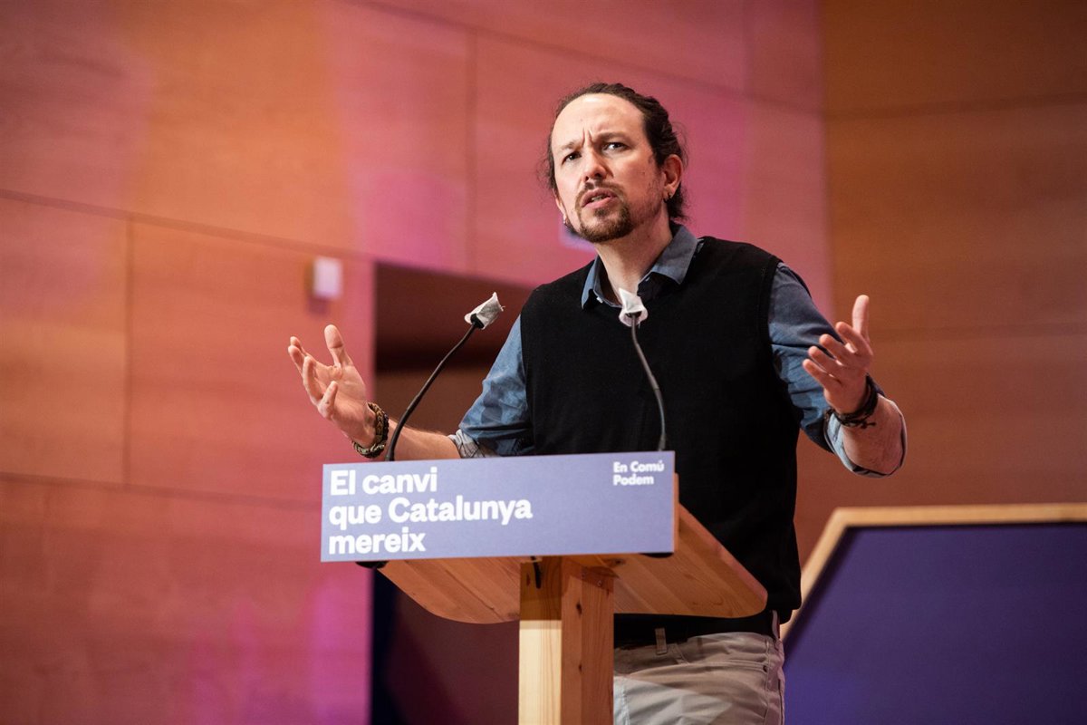 (I-D) El vicepresidente segundo del Gobierno, Pablo Iglesias, interviene durante el acto central de campaña de En Comú Podem para las elecciones catalanas, en Santa Coloma de Gramanet, Barcelona. - Marc Brugat - Europa Press