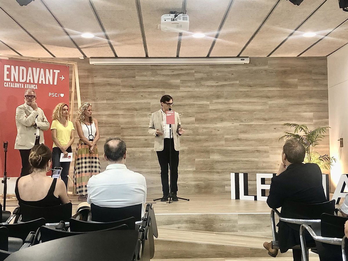 El líder del PSC, Salvador Illa, desde Lleida. - EUROPA PRESS