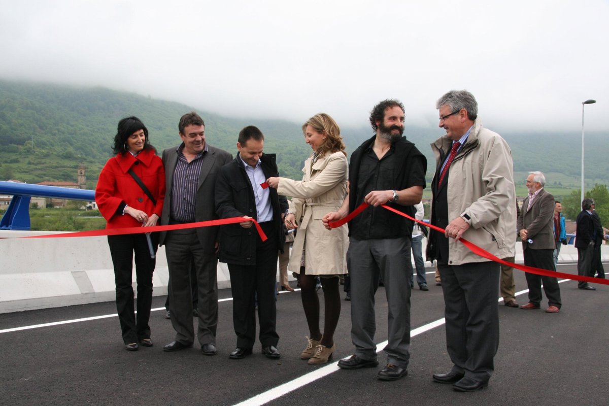 La consejera de Obras Públicas, Transportes del Gobierno de Navarra, Laura Alba, inauguró esta mañana las obras del nuevo paso superior de la línea férrea Zaragoza/Alsasua, en el término municipal de Bakaiku. Al acto también asistió el alcalde de Bakaiku, Eduardo José Urrestarazu Fernández, así como y José Parejo Melero y Luis López Ruiz, en representación de la empresa estatal Adif.