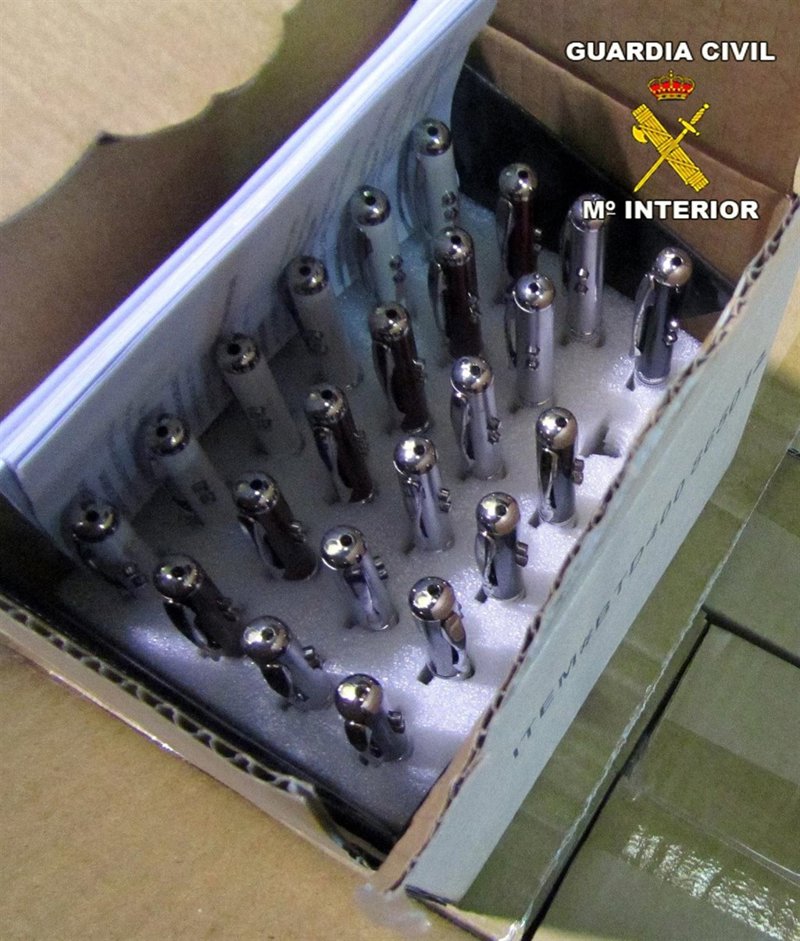 Agentes de la Patrulla Fiscal y de Fronteras de la Guardia Civil de Calvià incautaron el pasado 10 de julio un almacén de venta al por mayor ubicado en la localidad mallorquina de Marratxí un total de 6.900 punteros láser, que fueron remitidos al Govern en el marco de la primera operación tras la puesta en marcha por parte de la Delegación del Gobierno del protocolo de actuación para combatir el uso de estos aparatos contra los aviones.