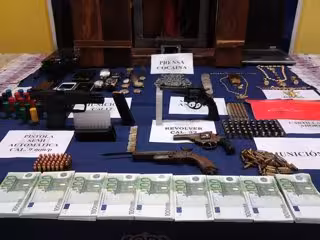 Durante la operación se han practicado ocho registros, uno en Zaragoza y el resto en la Comunidad foral, en los que se han intervenido cuatro armas de fuego, munición, 78.770 euros y joyas. Entre el material intervenido, destaca un teléfono móvil de oro y una cadena de oro con un colgante en forma de pistola.