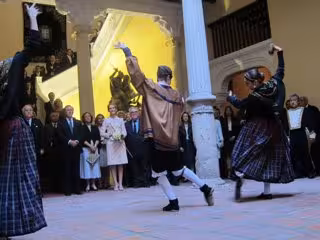 El grupo "la Fiera de Zaragoza" ha bailado en su honor la Jota de Zaragoza y la Jota de Alcañiz de Saltos, además han improvisado una jota alusiva a la Infanta, que le ha hecho mostrar una amplia sonrisa.