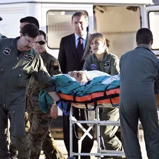 Estos cinco heridos viajaron en Airbus de la Fuerza Aérea Española acompañados por el ministro de Industria, Comercio y Turismo, Joan Clos; el secretario de Estado de Asuntos Exteriores, Bernardino León; representantes de los Gobiernos catalán y vasco, y varios médicos.