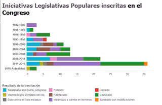 El número de iniciativas registradas en el Congreso ha sido históricamente muy pequeño en comparación con el de leyes que promueve el Gobierno o las proposiciones de los grupos políticos.
