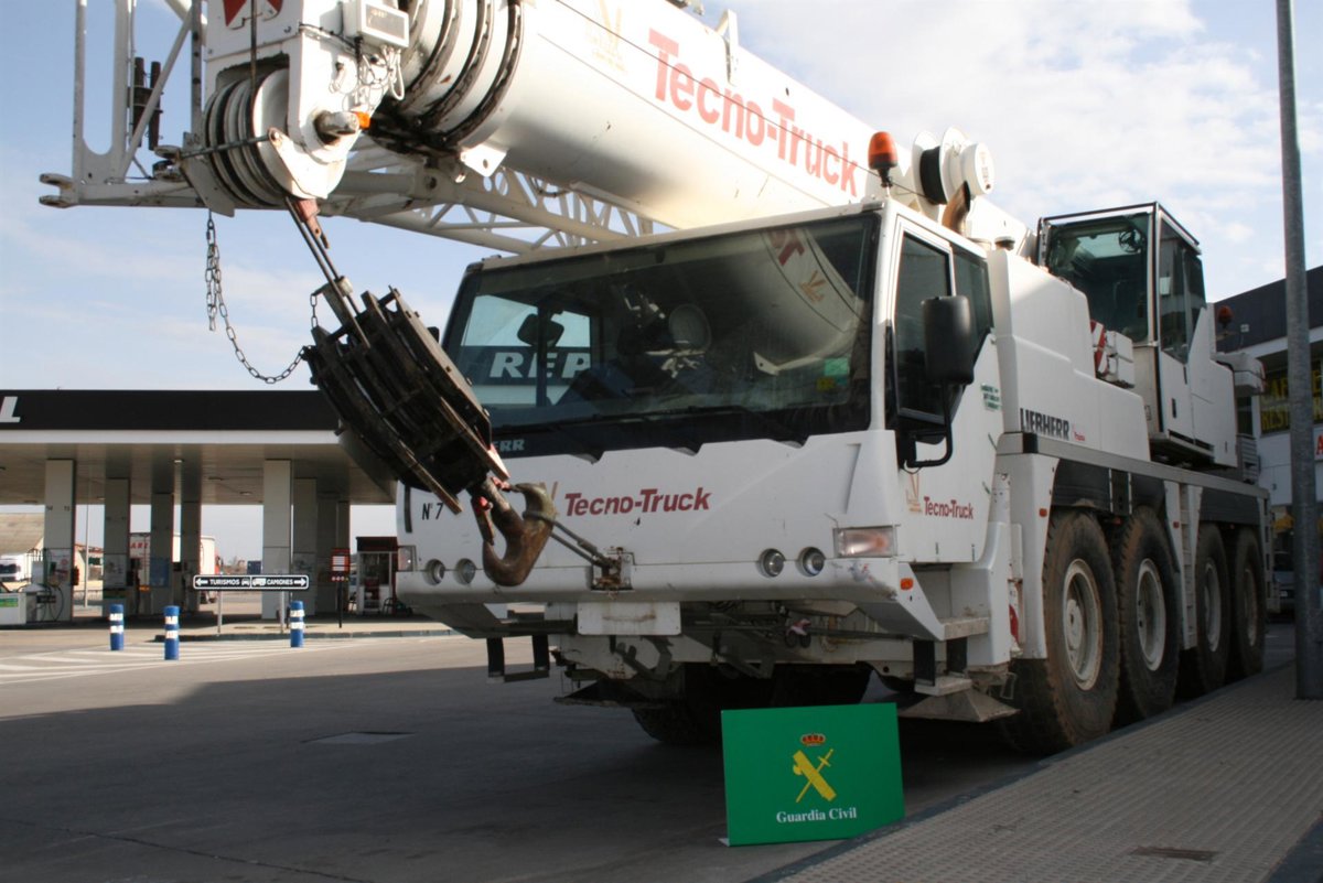 Se trata de un camión grúa autopropulsado marca Liebherr, de 60 toneladas y 50 metros de brazo telescópico, que había sido robado en Madrid fechas atrás. Inmediatamente le realizaron un cambio de matrícula por la de otro vehículo de similares características y en servicio en otra provincia.