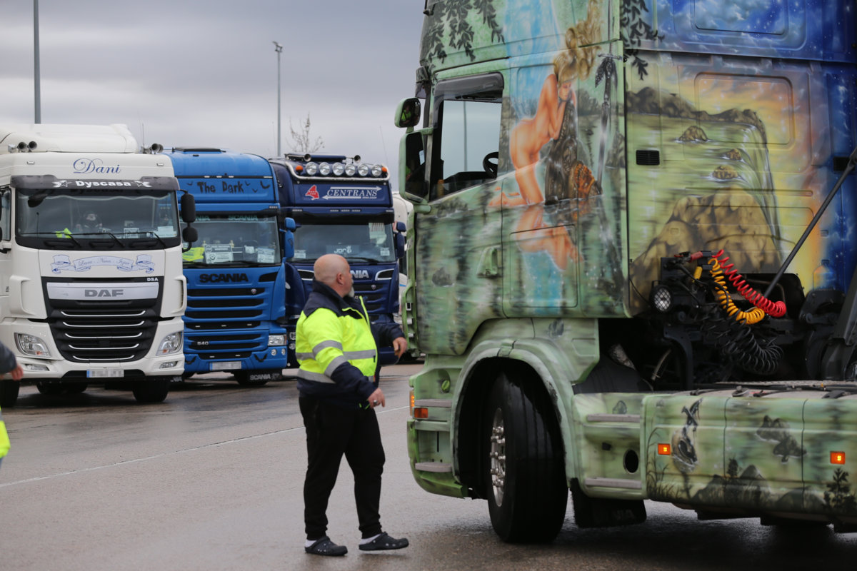 Transportistas a su llegada al Polígono Industrial Barral, en el noveno día de paro nacional de transportistas, a 22 de marzo de 2022, en San Fernando de Henares, Madrid (España). - Isabel Infantes - Europa Press