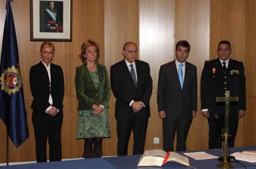 El acto, celebrado en la sede de la Jefatura Superior de Policía de Madrid, ha contado con la presencia del ,ministro del Interior, Jorge Fernández Díaz, la Delegada del Gobierno, algunos de los integrantes de la nueva Junta de Gobierno de la Policía y la presidenta de la Comunidad de Madrid, Esperanza Aguirre.