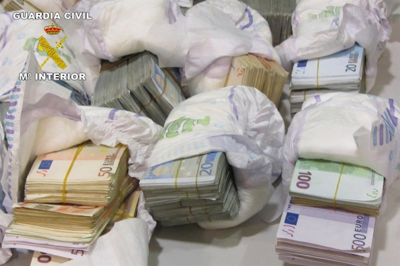 La Guardia Civil ha intervenido a un chino de 35 años un total de 223.505 euros ocultos en el interior de pañales en el equipaje facturado, que pretendía salir de España con un vuelo con destino a Shanghai, según ha informado el Instituto Armado.