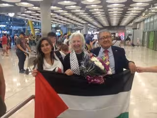 Mazarrasa ha sido recibida este miércoles por la mañana en el aeropuerto Adolfo Suárez-Madrid Barajas por el delegado palestino en España, Musa Odeh, según puede verse en las fotografías que ha difundido en Twitter la organización Rumbo a Gaza, promotora de la expedición.