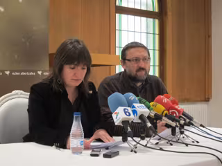 Los portavoces de la izquierda abertzale Maribi Ugarteburu y Txelui Moreno han ofrecido este lunes una rueda de prensa para rechazar la dispersión de los presos de ETA tras los accidentes de tráfico sufridos este pasado fin de semana por familiares de presos de ETA al acudir a visitar a los reclusos.