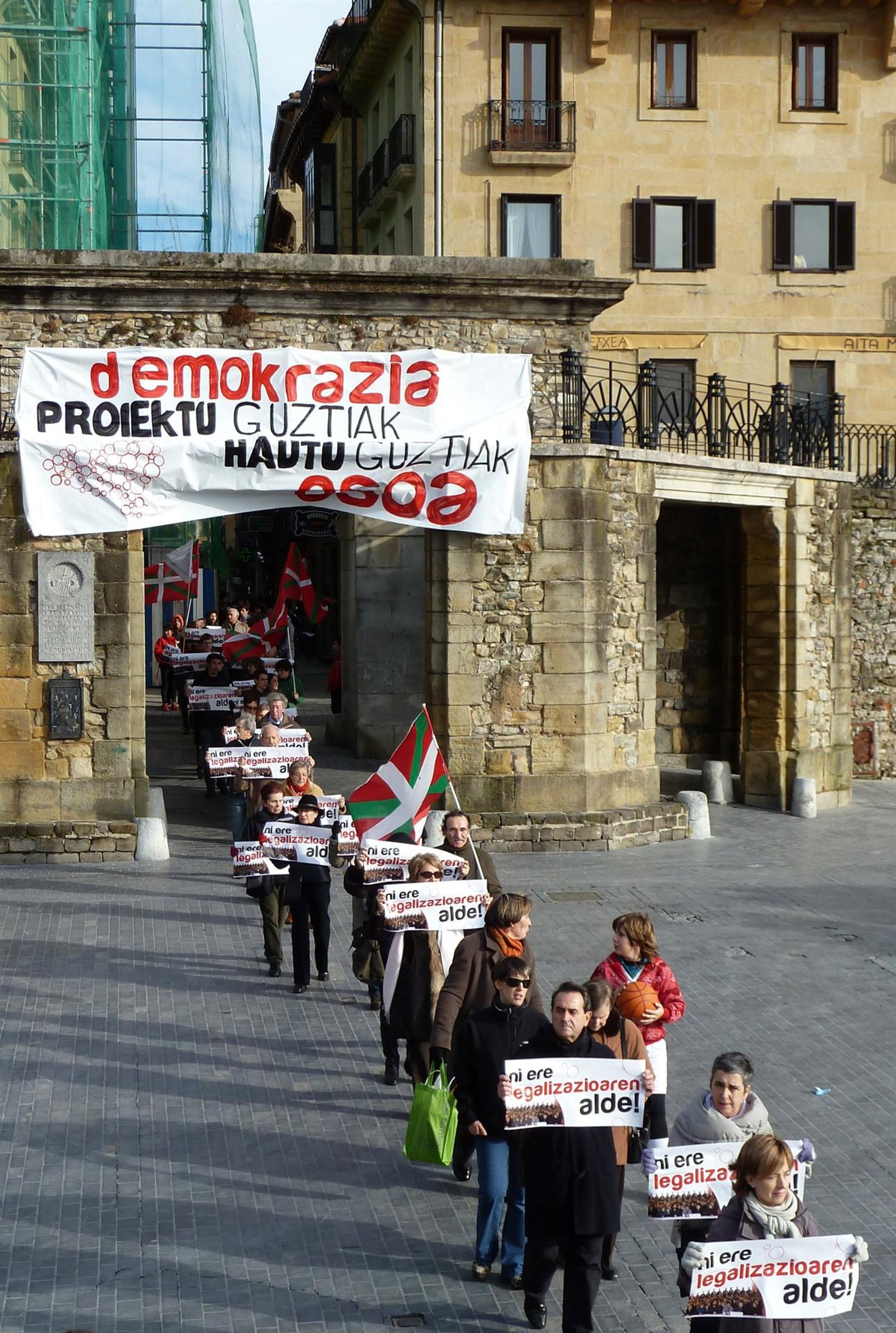 Tras pasar entre los puestos del mercado, los manifestantes, entre los que se encontraban el representante de LAB Joxan Urkiola, el ex edil de Batasuna en San Sebastián Josetxo Ibazeta o el histórico de la citada formación Joseba Alvarez, han recorrido diversas calles de la Parte Vieja para, a continuación, dirigirse al puerto.