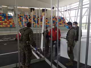 Las tiendas fueron sustituidas por paneles similares a los instalados en los hospitales de campaña habilitados en la Fira de Barcelona o en Ifema en Madrid, y que este jueves están ya colocando efectivos del Ejército de Tierra.