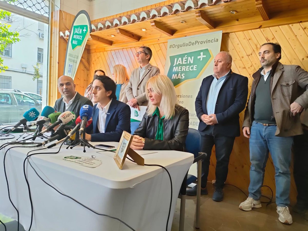 Luis García (c) comparece junto a los otros dos concejales de JM+ en el Ayuntamiento de Jaén y otros responsables del partido. - EUROPA PRESS