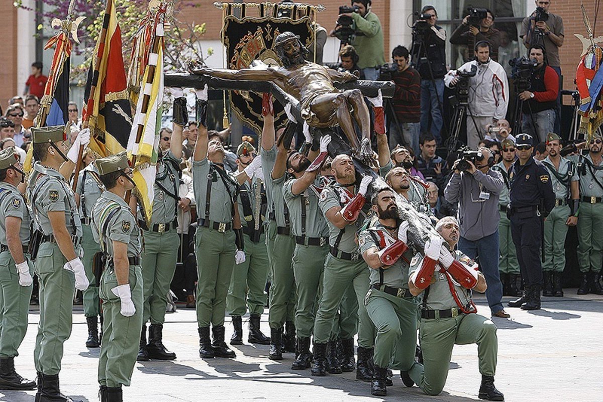 El jueves, tras la última guardia de honor, comenzará el traslado del Cristo desde la Catedral hasta el Cuartel General del Ejército de Tierra, donde será entronizado. El traslado del Cristo yacente se hará a hombros de los legionarios, pero también de unos 400 militares extranjeros que han querido sumarse a esta primera procesión.