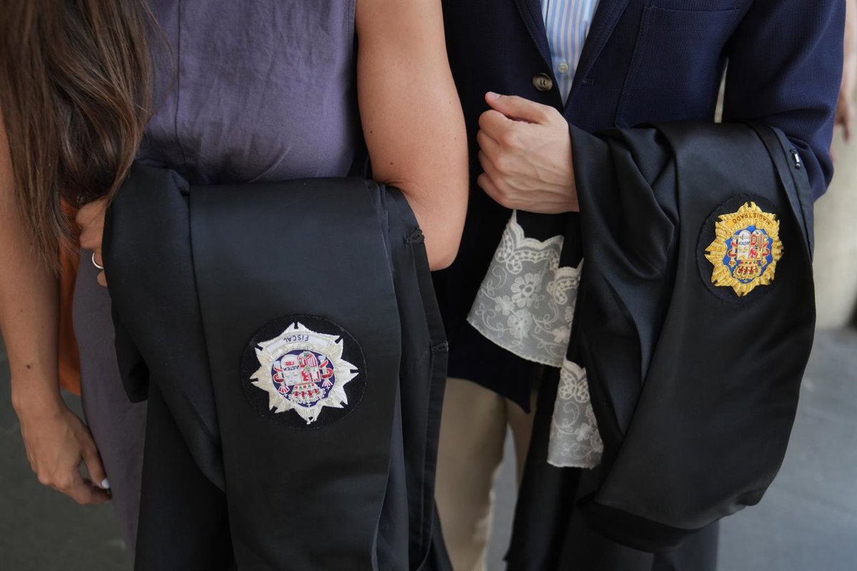 Jueces y fiscales con las togas en las manos, durante un paro de diez minutos de asociaciones de jueces y fiscales. - David Zorrakino - Europa Press