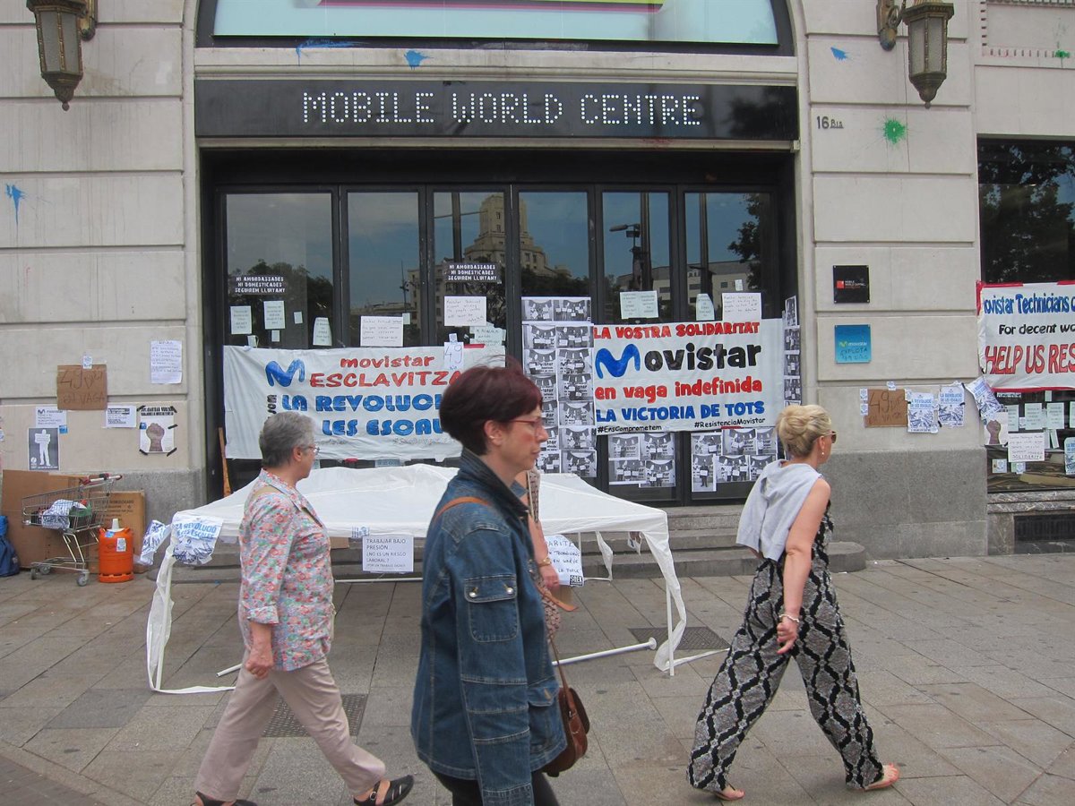 Un juez ha ordenado este viernes desalojar a los trabajadores subcontratados de Telefónica que permanecen en huelga en la sede del Mobile World Centre de la plaza Cataluña de Barcelona.