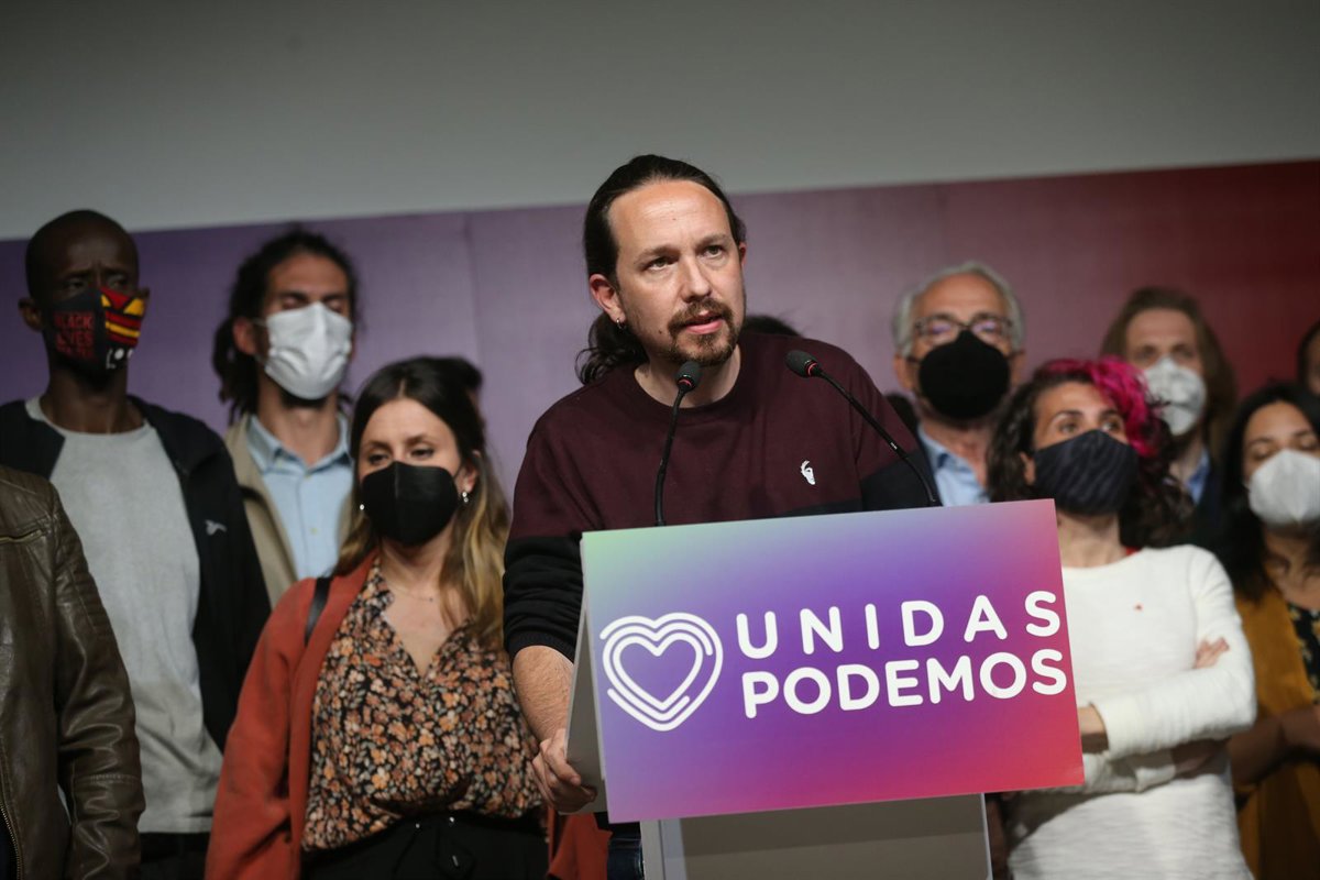El candidato de Unidas Podemos a la Presidencia de la Comunidad de Madrid y secretario general de Podemos, Pablo Iglesias, durante una rueda de prensa tras la jornada electoral. - I.Infantes.POOL - Europa Press