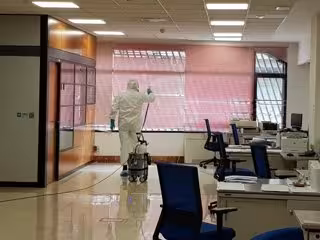 Efectivo de la UME realiza labores de desinfección en los juzgados de Plaza Castilla y en juzgados de familia - MINISTERIO DE DEFENSA