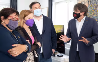 Según Junqueras, dentro de la vivienda sí ha habido varios abrazos con el expresidente, pese a que frente a los periodistas solo han compartido espacio en la foto de familia junto a la expresidenta del Parlament Carmen Forcadell, y los exconsellers Raül Romeva, Dolors Bassa y Meritxell Serret, que han acompañado a Junqueras.