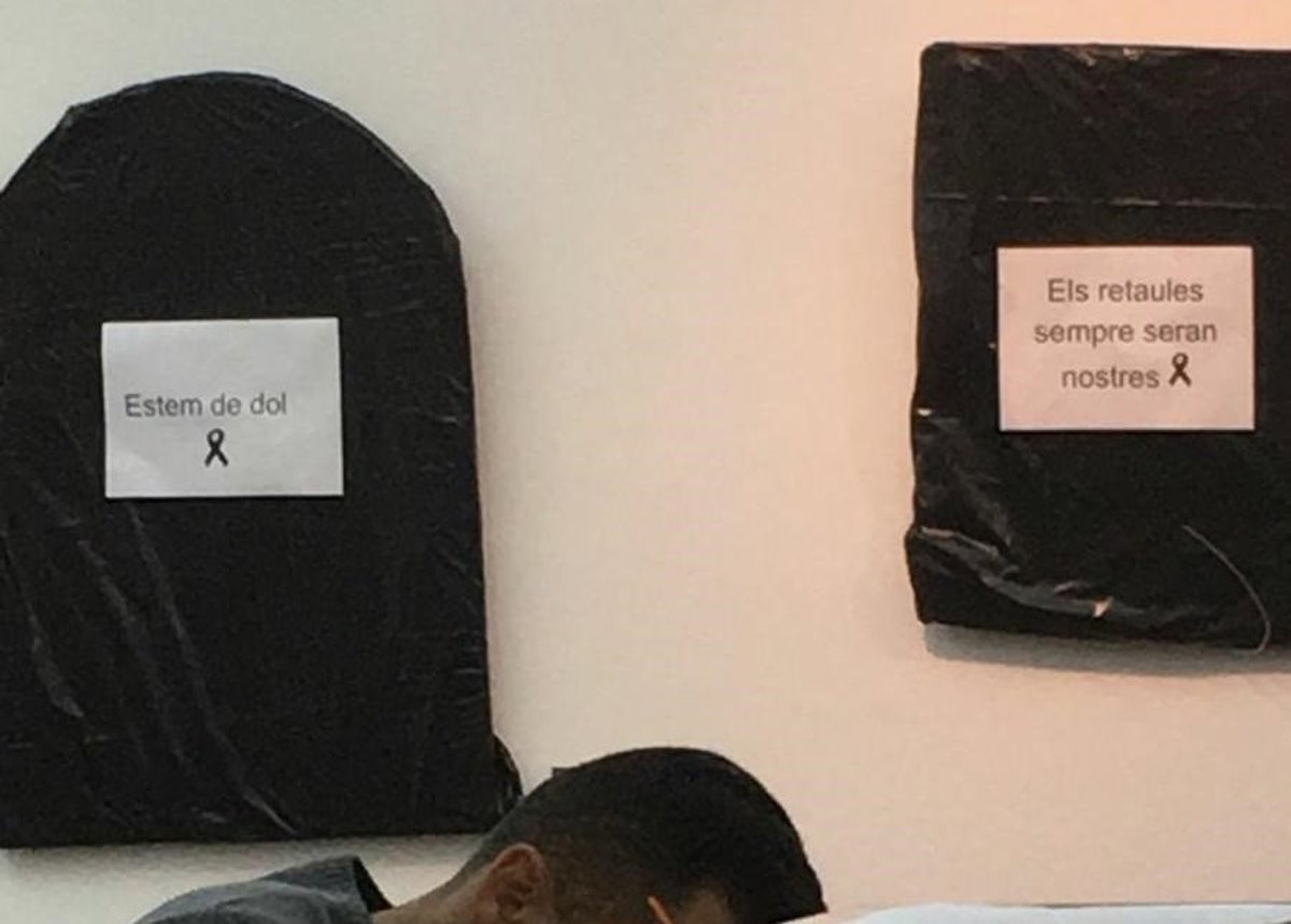 La autora ha explicado a Europa Press que hace unos días, a petición de la junta electoral tapó los cuadros y colocó unos carteles en los que podía leerse frases como 'Estamos de luto' o 'Los cuadros serán siempre nuestros' y que estos carteles los ha tenido que quitar "porque lo ha pedido un apoderado de Ciudadanos".