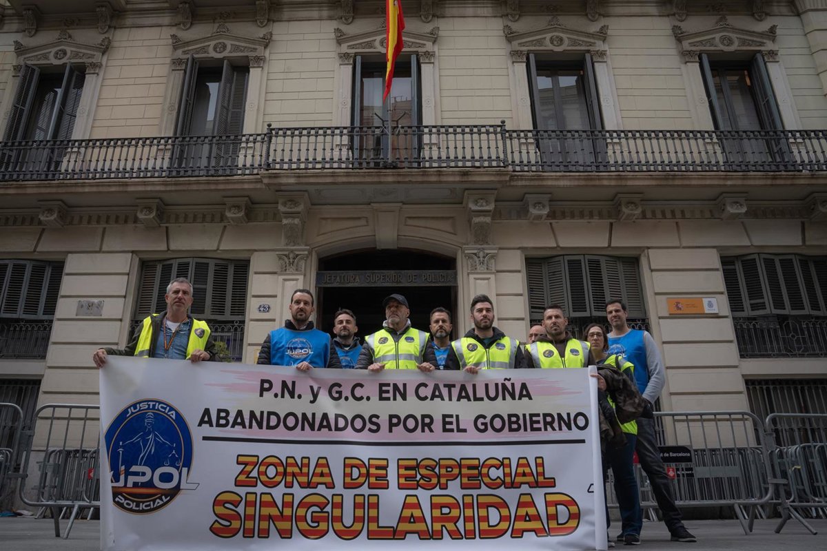 Archivo - Miembros del sindicato Jupol durante una concentraciónante la Jefatura de Via Laietana en Barcelona - David Zorrakino - Europa Press - Archivo