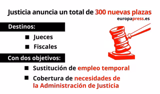 Según informa este departamento en un comunicado, las 300 plazas, el máximo que permiten los Presupuestos Generales, se destinarán a la sustitución paulatina del empleo temporal en ambas carreras y a la cobertura de las necesidades de la Administración de Justicia.