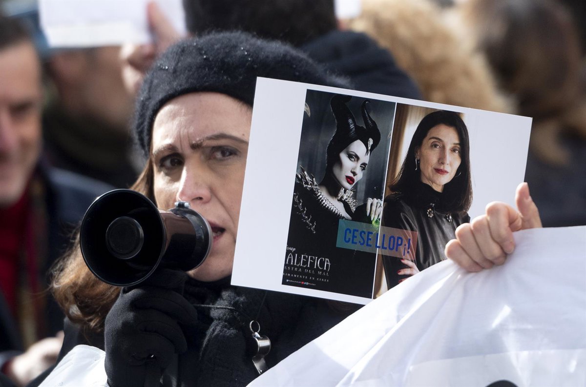 Una mujer con una foto de la ministra de Justicia, Pilar Llop, en una manifestación de letrados de la Administración de Justicia para exigir sueldos dignos, a 24 de enero de 2023, en Madrid (España). Las tres principales asociaciones de letrados de la A - Alberto Ortega - Europa Press