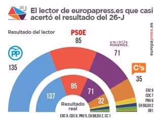 Los resultados de las elecciones generales del pasado domingo echaron por tierra casi todos los pronósticos de las encuestas, pero hubo una persona, entre los más de 400 lectores que participaron en la 'porra electoral' de europapress.es, que casi acertó el resultado.