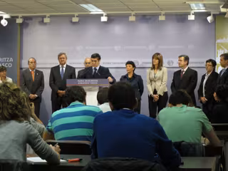López ha comparecido ante los medios de comunicación este martes, acompañado por los miembros de su gabinete, con motivo de la próxima celebración del segundo aniversario de su investidura como lehendakari.