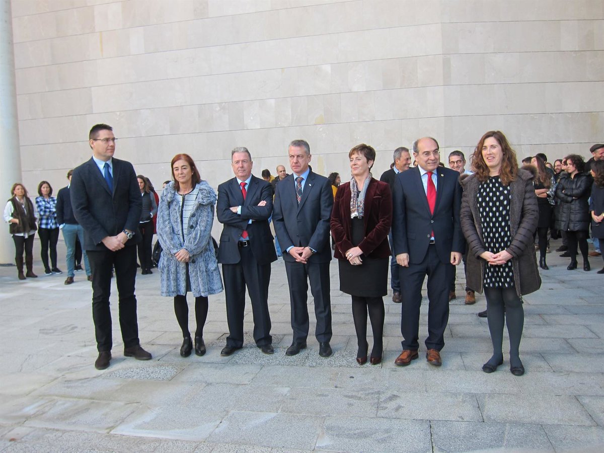 Urkullu, junto a las consejeras de Desarrollo Económico y Competitividad, Arantxa Tapia, de Educación, Política Lingüística y Cultura, Cristina Uriarte, y el consejero de Sanidad, Jon Darpón, han guardado unos minutos de silencio en el exterior de las instalaciones del BCBL.