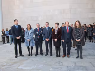 El diputado general, Markel Olano, junto a los diputados forales Denis Itxaso, Imanol Lasa, José Ignacio Asensio, o Marisol Garmendia, entre otros, han guardado un minuto de silencio acompañados por cerca de medio centenar de personas.