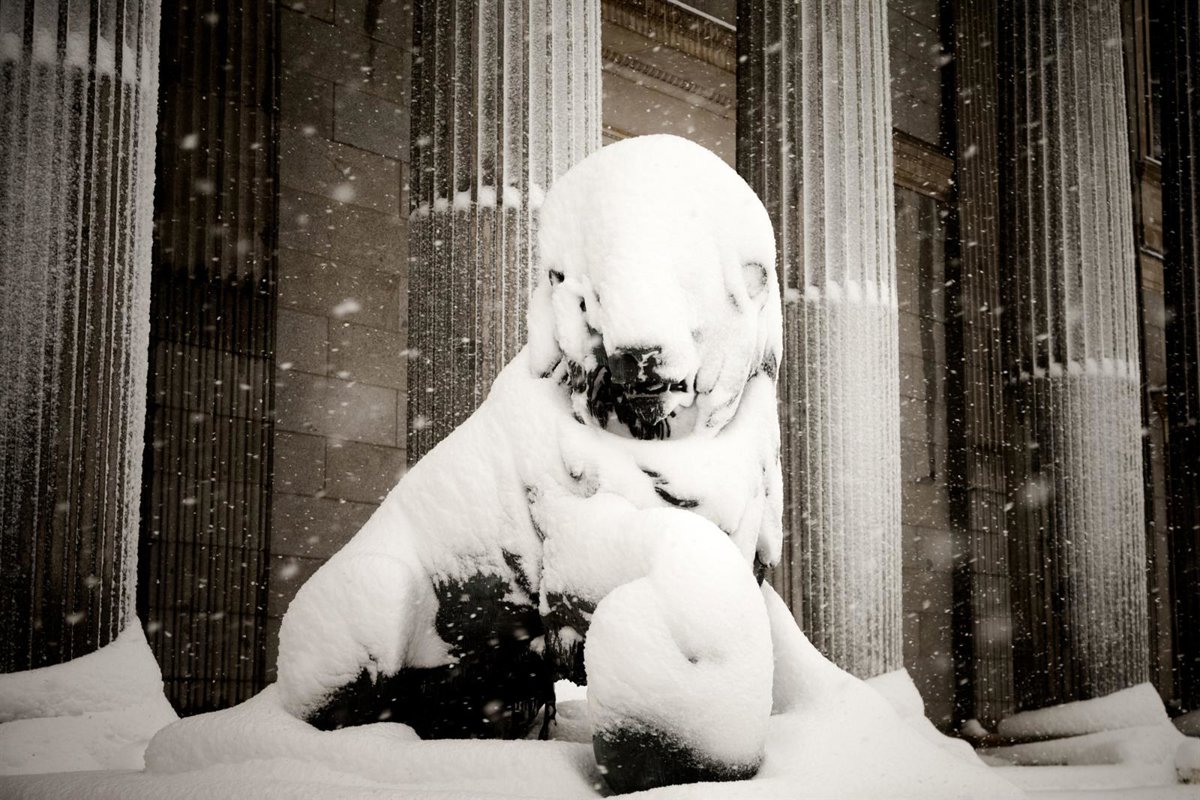 "Filomena y Velarde", la fotografía de uno de los leones del Congreso completamente nevado en los días de la tormenta Filomena, se ha alzado con la última edición del premio Imagen del Parlamento que otorga cada año la Asociación de Periodistas Parlamentarios (APP).
