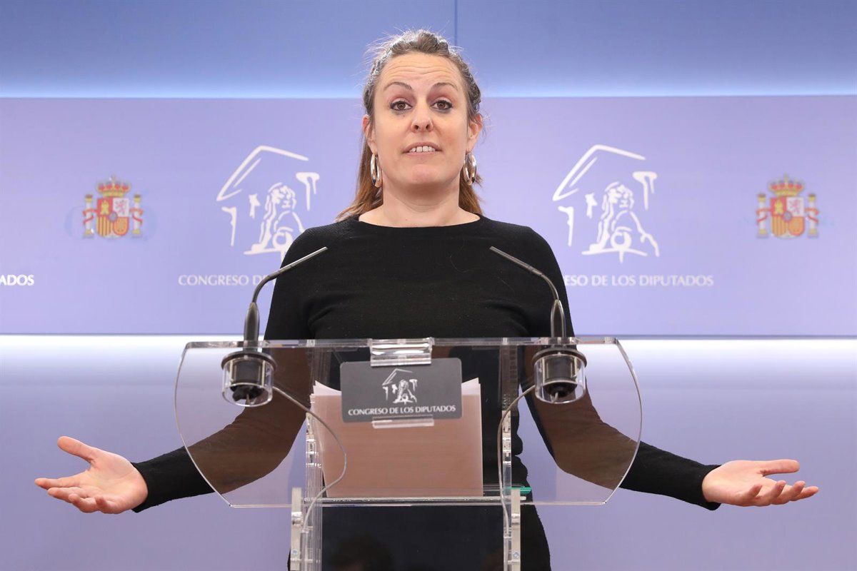 La portavoz de la CUP en el Congreso, Mireia Vehí, interviene en una rueda de prensa previa a una reunión de la Junta de Portavoces, en el Congreso de los Diputados, a 15 de febrero de 2022, en Madrid (España). - Marta Fernández Jara - Europa Press