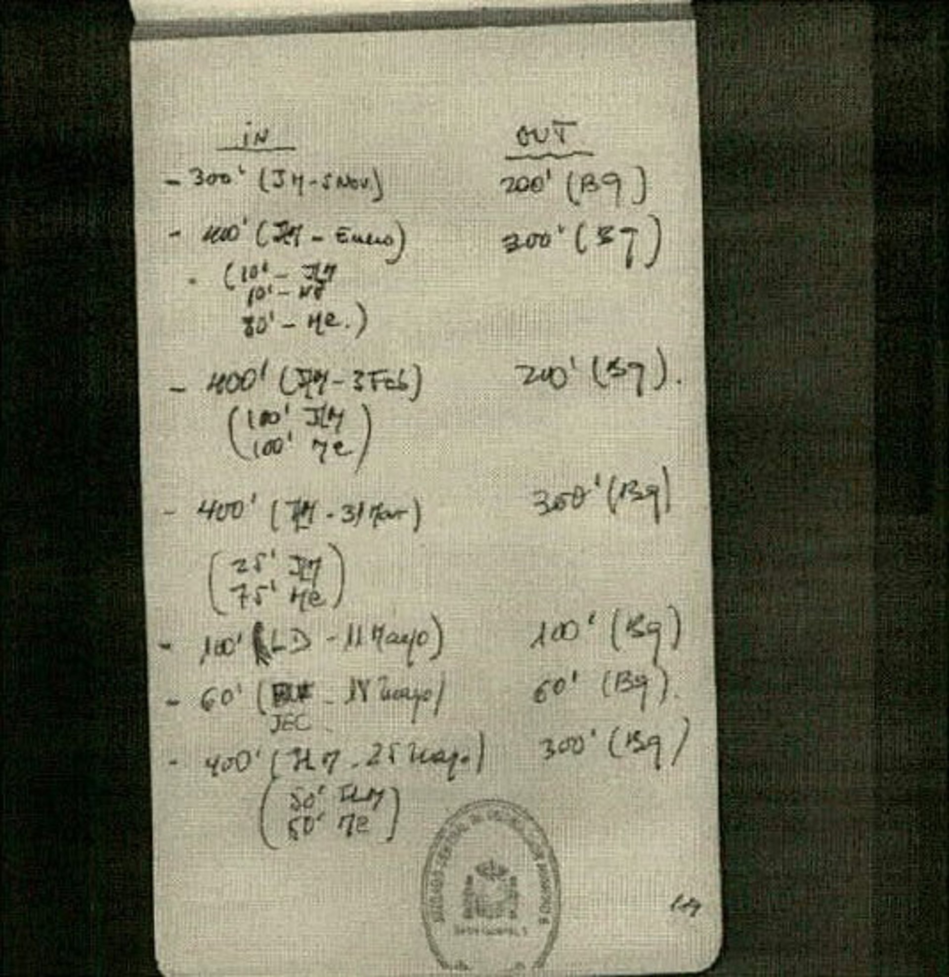 Los apuntes indican que 'JLM' pagaba y otros se lo repartían, entre ellos el propio Granados a quien se identifica en las notas con la palabra 'me' ('yo', en inglés). También parece deducirse que el propio López Madrid se queda una "comisión" del dinero que entregaba.