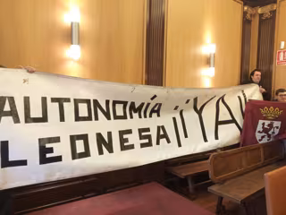 Archivo - Pancarta desplegada e el pleno del Ayuntamiento de León en favor de la autonomía de la Región Leonesa. - EUROPA PRESS - Archivo