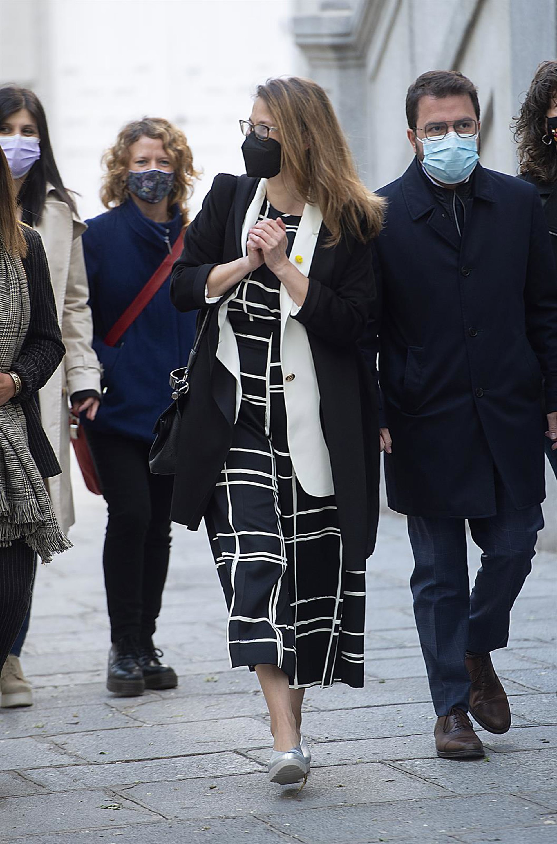 La exconsejera de Agricultura, Ganadería, Pesca y Alimentación de la Generalitat Meritxell Serret, y el Coordinador Nacional del partido, Pere Aragonés, a su llegada al Tribunal Supremo por el procés, a 30 de abril de 2021, en Madrid, (España). Serret - Alberto Ortega - Europa Press