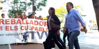 Los manifestantes han abroncado a Johnson al grito de 'Gürtel' y 'corrupta' y han exhibido pancartas en las que se podía leer 'Els treballadors no som els culpables. RTVV la volem nostra pública, de qualitat i en valencià' (Los trabajadores no somos los culpables. RTVV la queremos nuestra pública, de calidad y en valenciano), así como 'Prevaricació valenciana' y 'Teleimputació'.