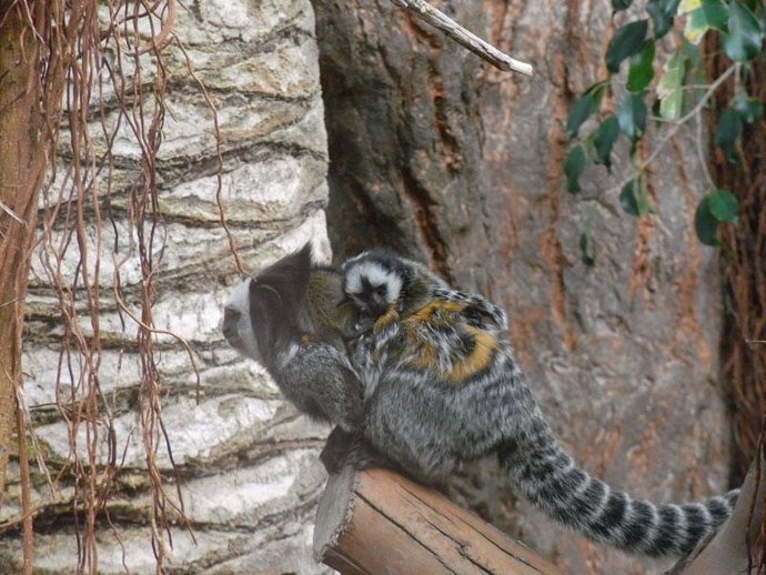 El Loro Parque (Tenerife) amplía su familia de animales con el reciente nacimiento de dos monos tití, que colgados de la espalda de sus progenitores, se han sumado esta semana a la amplia variedad de animales que tiene el Parque.