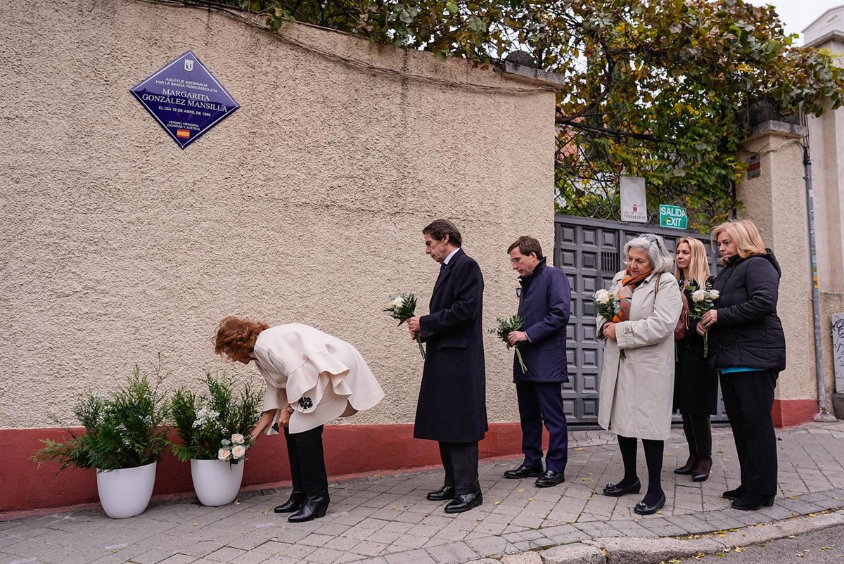 La ciudad de Madrid recuerda desde este miércoles con una placa a Margarita González Mansilla, víctima mortal del atentado cometido por ETA en 1995 contra el expresidente del Gobierno José María Aznar - AYUNTAMIENTO DE MADRID