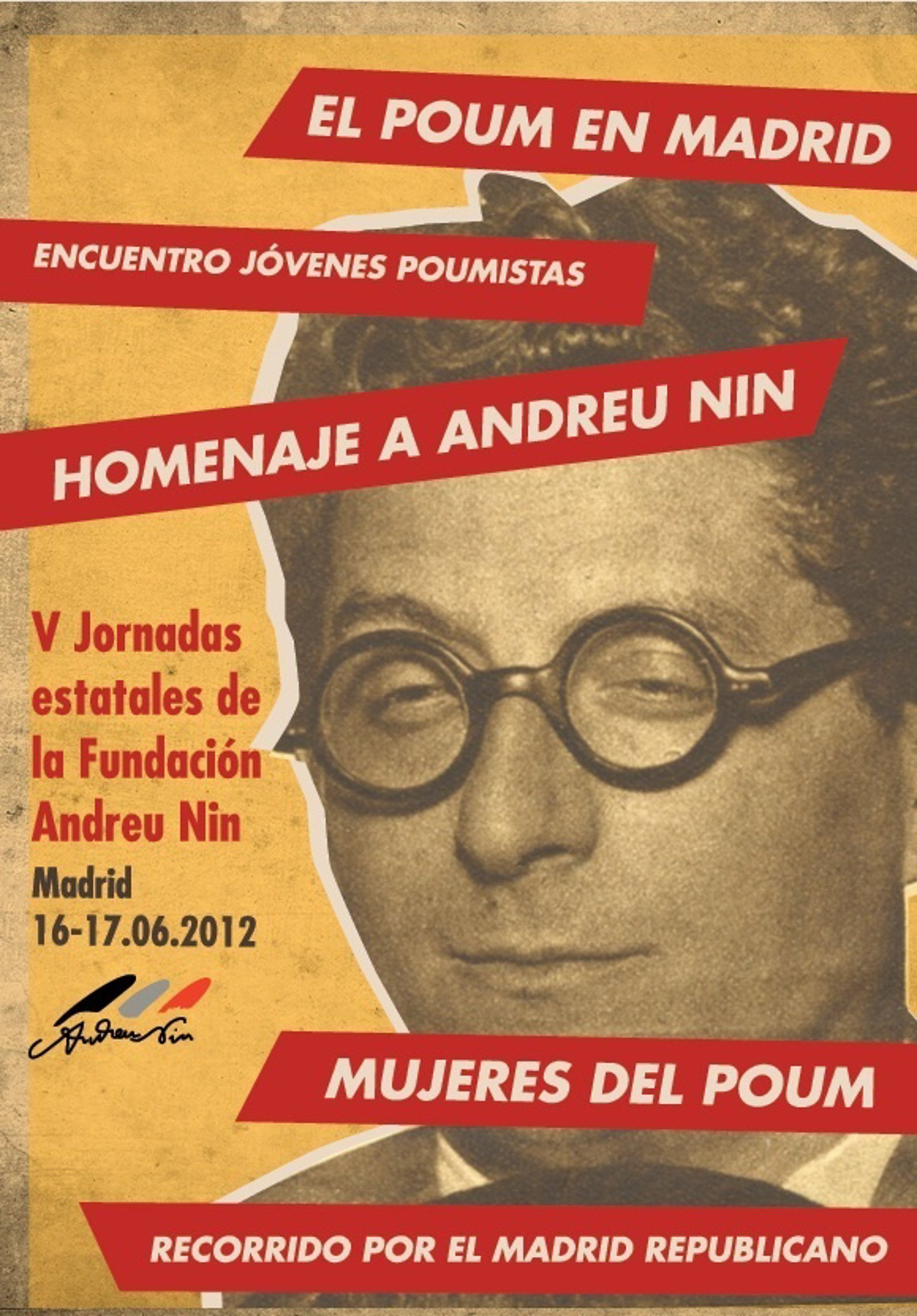 En el marco de sus quintas jornadas estatales, la Fundación Andreu Nin ha organizado una serie de actos de homenaje en Madrid como la presentación de una serie de trabajos sobre la actividad del POUM en Madrid y sobre la participación de las mujeres en el partido.