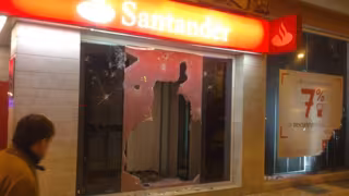 Desde allí han vuelto hasta la zona donde se ha desarrollado el conflicto en las dos últimas noches, punto de partida de la marcha, momento en el que han comenzado a tirar las vallas que protegen las obras, han incendiado al menos cuatro contenedores que han ubicado en medio de la calle Vitoria y han causado importantes daños en una oficina del Banco Santander.