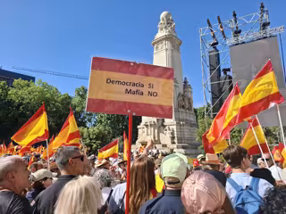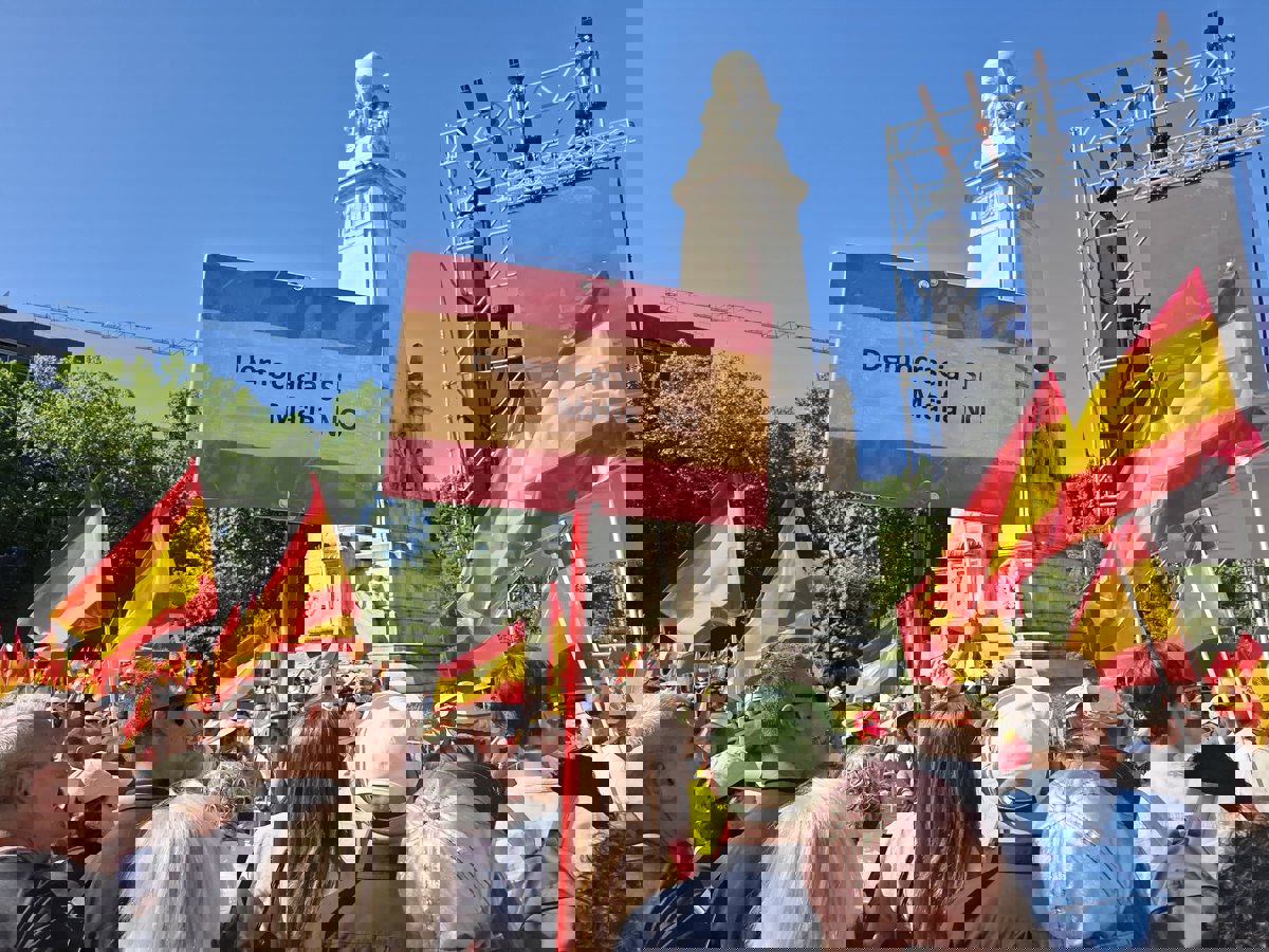 Asistentes a la concentración convocada por el PP contra el Gobierno en la Plaza de España de Madrid, a 8 de junio de 2025 - EUROPA PRESS