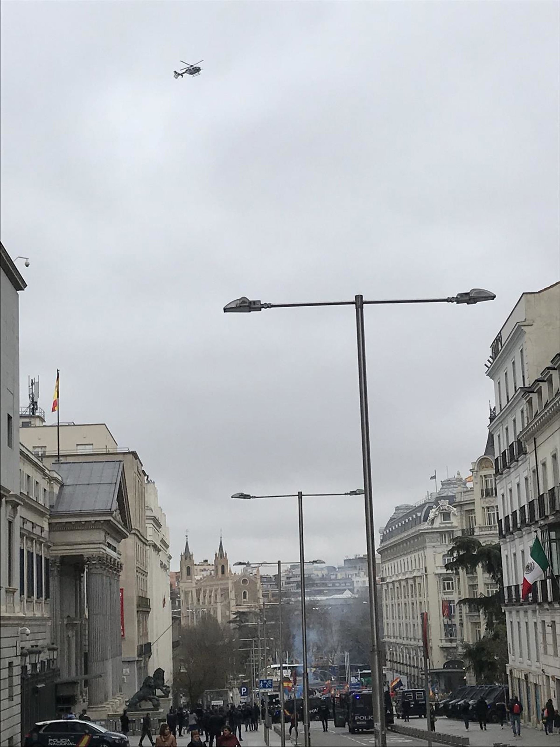 Los disturbios han obligado a la Policía Nacional a replegar el dispositivo de seguridad a las puertas del Congreso y los manifestantes han proseguido con su concentración en la plaza de las Cortes a escasos meses de las escalinatas de la Cámara Baja.