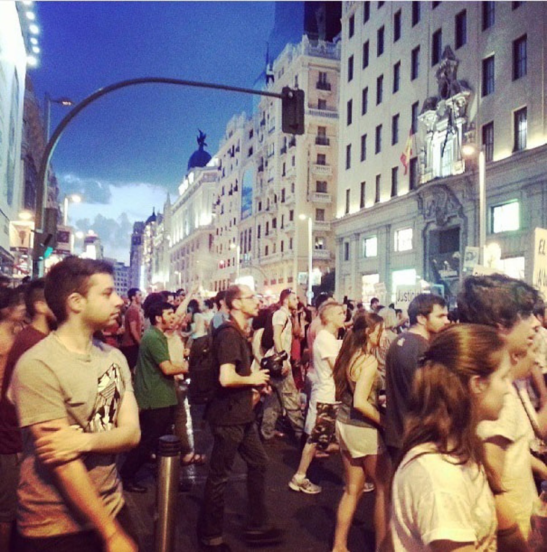 Así, sobre las diez de la noche, los varios centenares de personas que se congregaban en la Puerta del Sol se han dividido en varios grupos, unos que han decidido permanecer en este enclave y otro que ha marchado por la calle Montera hasta la Gran Vía madrileña.