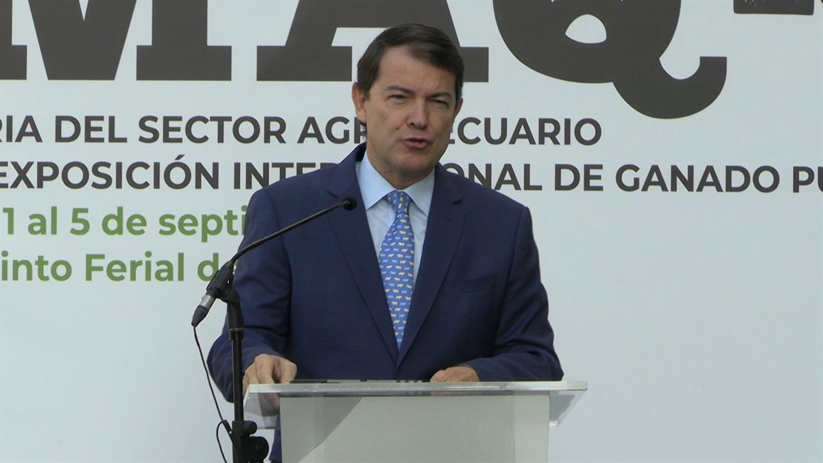 El presidente de la Junta de Castilla y León, Alfonso Fernández Mañueco, acusa al Gobierno en funciones de "falta de actuaciones con la enfermedad hemorrágica" de las vacas y recuerda que es obligación del Ministerio.