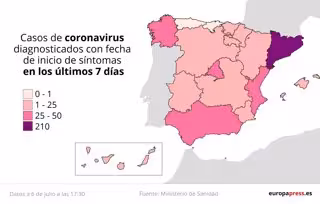 La semana comienza con 15 autonomías con cerca de 60 rebrotes de coronavirus, todas salvo La Rioja y Asturias, y con dos zonas en Lleida y en Lugo en las que se han vuelto a tomar medidas de confinamiento para detener la transmisión comunitaria. Esta misma situación se mantiene en un edificio de pisos de Santander (Cantabria) y en otro de Albacete.